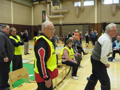 Starttasimme, Lievojat ja Jorma, aamun pimeydessä Halkiasta tasan puoli kahdeksan Ahosen Matin kyydillä kohden Porvoota ja Kokonhallia, jossa olimme hyvissä ajoin kahdeksan jälkeen. Mattilat ja Partaset kyydissään Irena tulivat omilla autoillaan hieman myöhemmin. Meillä oli kisoissa kolme joukkuetta: Pornainen I Marja-Leena Leivoja, Irena tuomisto ja Inkku Mattila ja Pornainen II Jorma Laukka, Matti Ahonen ja Eino Partanen sekä Pornainen III joukkueessa oli vain kaksi pelaaja Matti Leivoja ja Marke Partanen, Kippilän Vekan jouduttua menemään hautajaisiin.