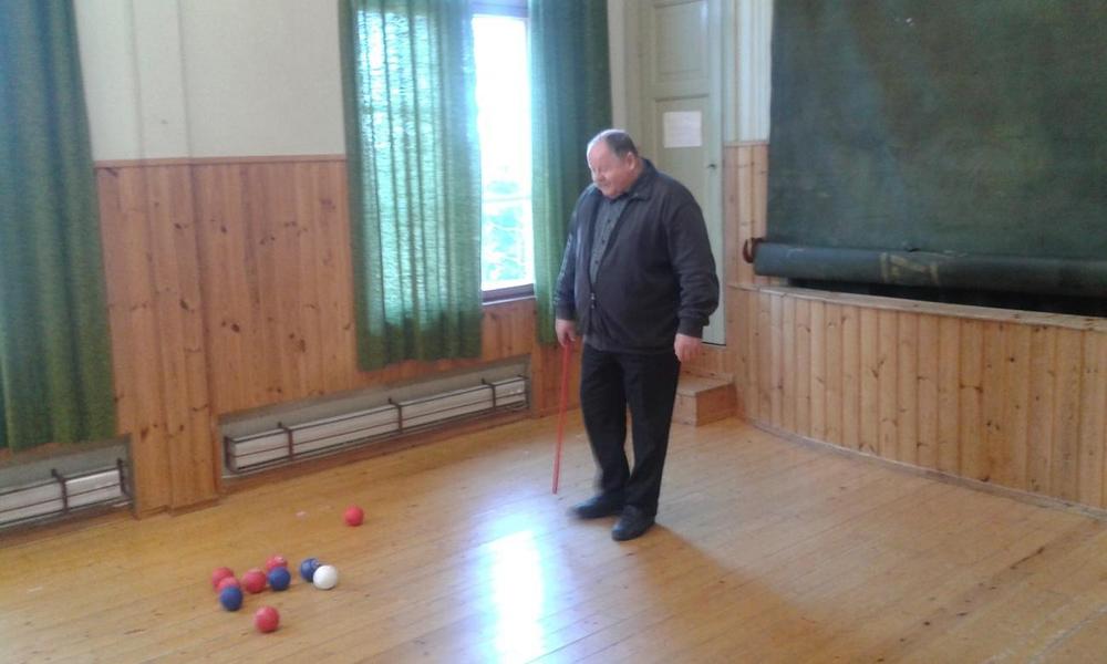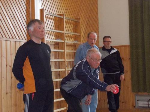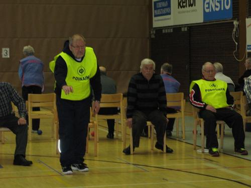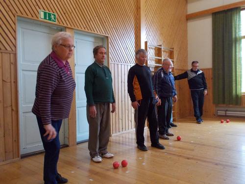 Topi, Reino ja Maippi Porvoon Eläkkeensaajista vieraanamme bocciaa pelaamassa 5.5.2014