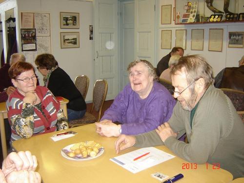 Vuoden 2013 ensimäisessä kerhossa tehtiin yhdistyksen kannalta pienimuotoista historiaa, sillä pelasimme ensi kerran leikkimielistä bingoa. Moni ei ollut sitä aikaisemmin kokeillutkaan mutta hyvin kaikki pääsivät juonesta kiinni ja vaikutti siltä että tätä harrastusta jatketaan kerhossa. Ihka ensimmäisen harjoittelubingon yhden rivin sai ensimmäisenä täyteen Kauko Sihvonen. Bingossa saavat harmaat aivosolumme hieman puuhaa ja tulee treenattua tarkkaavaisuutta ja jonkin verran sorminäppäryyttäkin!