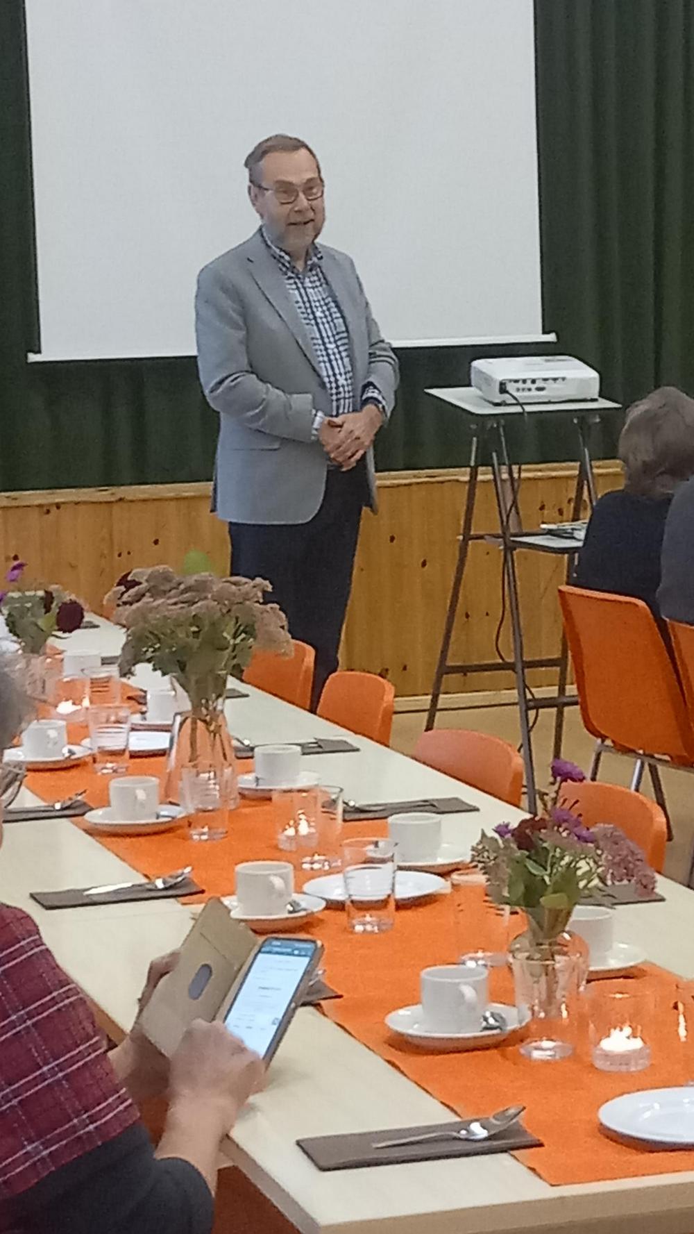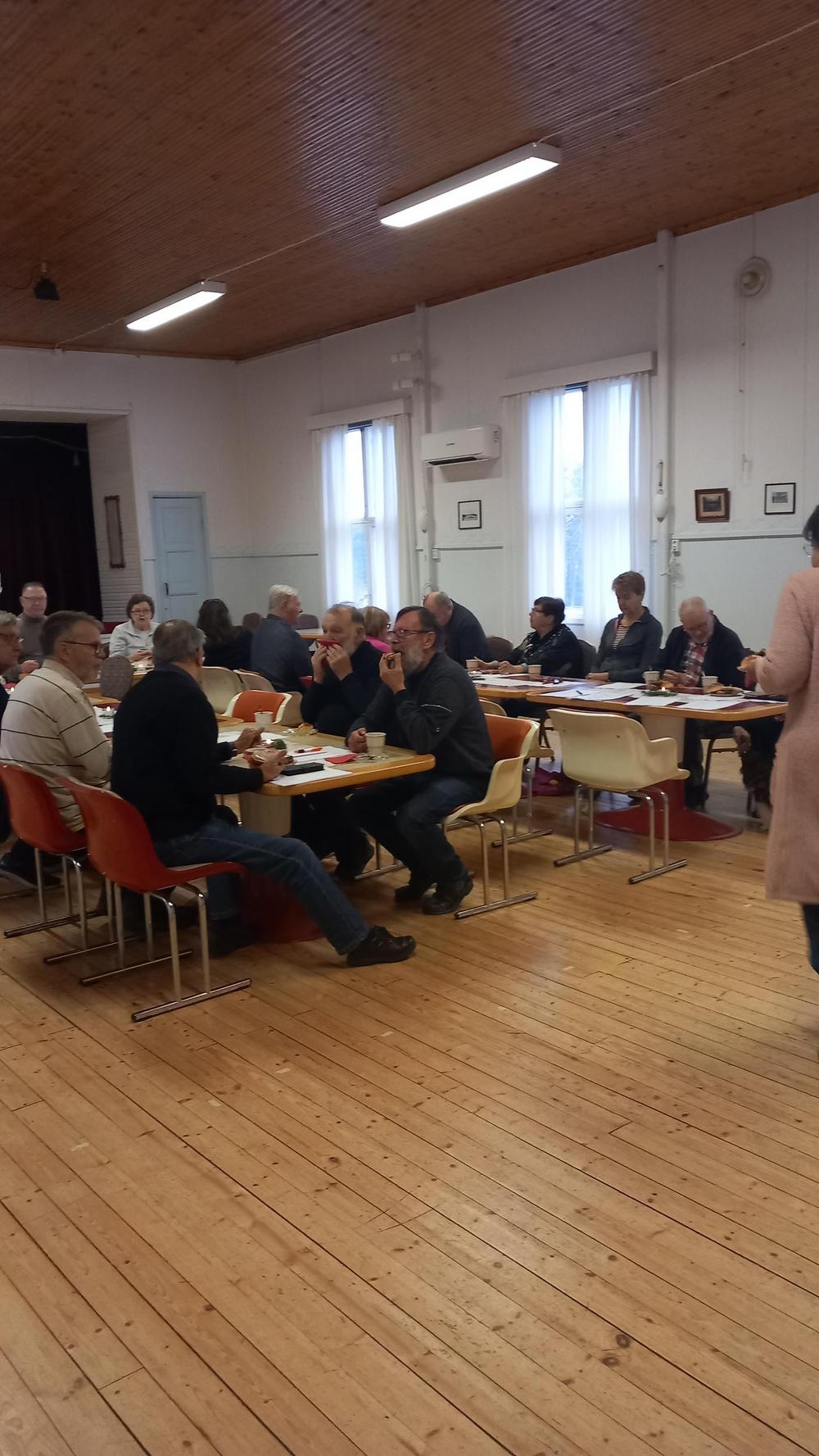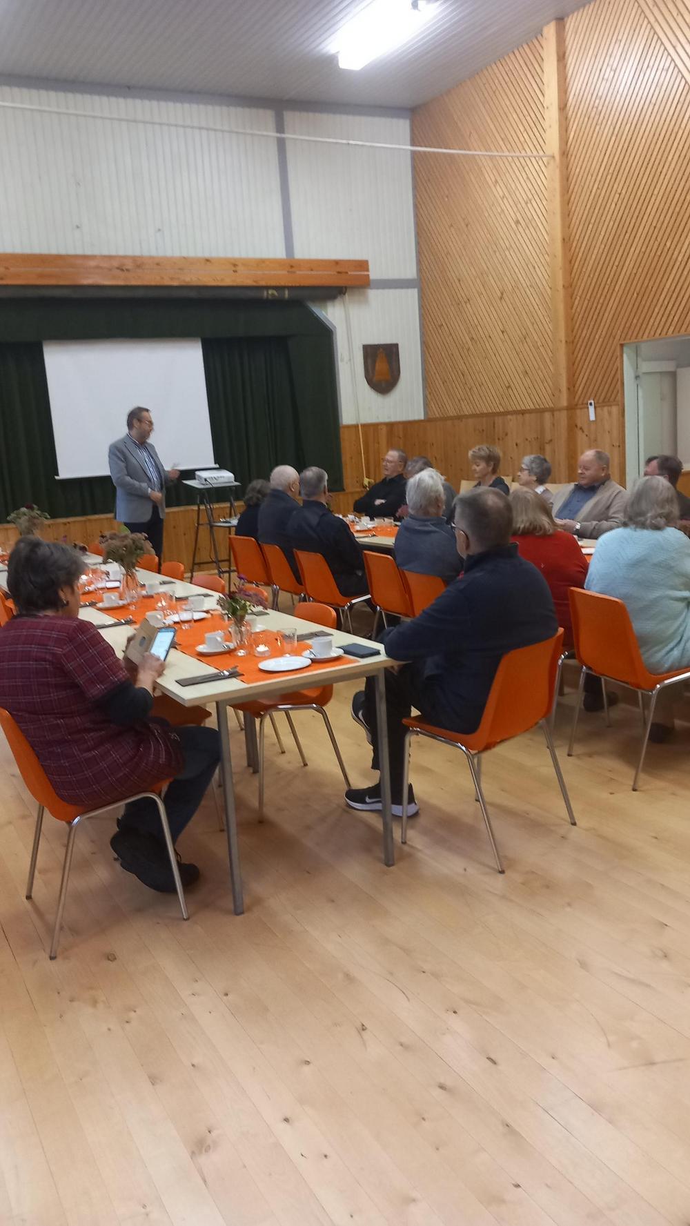 4.10.2023 Halkian työväentalolla keskiviikkokerho kokoontui hieman eri merkeissä kun vanhustenviikon kunniaksi meillä oli tarjolla lounas, väkeä oli 17 jäsentä ja 2 ulkopuolista, Tallinkin Peter Snellman ja Pornaisten kunnan vapaa-aikatoimen johtaja Timo Simonen, he kertoivat omasta toiminnasta.