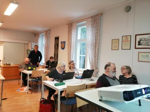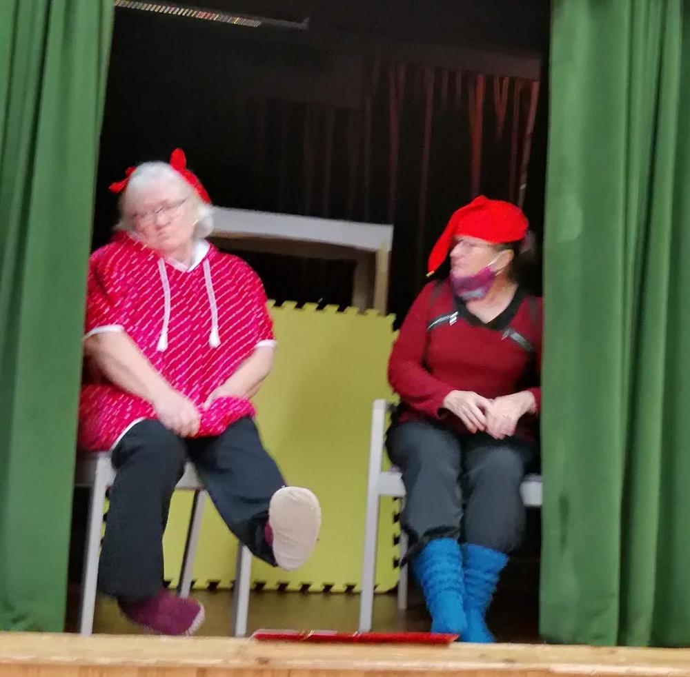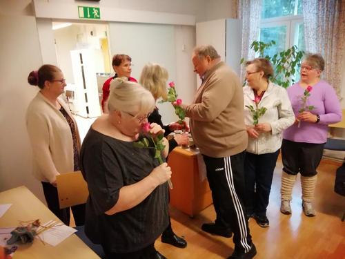 Liivien sovitusta kerhopäivänä ja pelaten bingoa.