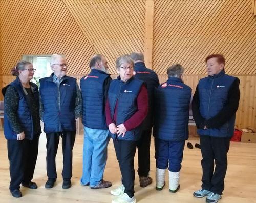Eläkeliiton Pornaisten yhdistys oli ottanut boccian harrastusvalikoimaansa vastikään mukaan ja yhdistyksen yhdeksän lajista kiinnostunutta harrastajaa tuli vieraiksemme hakemaan tuntumaa kisapelaamisesta. Varsin tasapäistä oli pelaaminen ja hattua täytyy nostaa vieraidemme pelitaidoille noin lyhyen harjoittelun jälkeen. Hauskaa oli, rippikoulukavereitakin tavattiin ja tunnelma oli rennon leppoisa niinkuin mukavan harrastuksen parissa kuuluukin olla. Muutoinkin porukat täydensivät hyvin toisiaan, meillä oli akkavalta ja vieraillamme päinvastoin - ainakin päälukujen mukaan! Eiköhän tavata vielä näissä merkeissä tai vaikkapa uudella mölkkykentällämme tulevana suvena. Kiitos vieraillemme käynnistä!