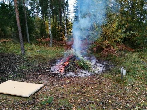 Puut liiterissä ja oksien polttoa,,,ihanaa savun tuoksua ja ulko-ilmaa. Kunpa olisi ollut makkarat mukana, olisi maistunut.