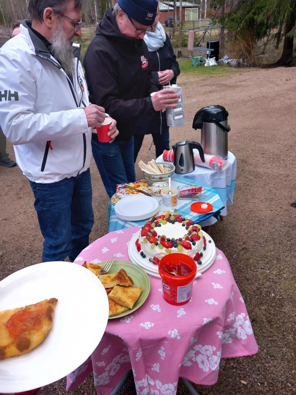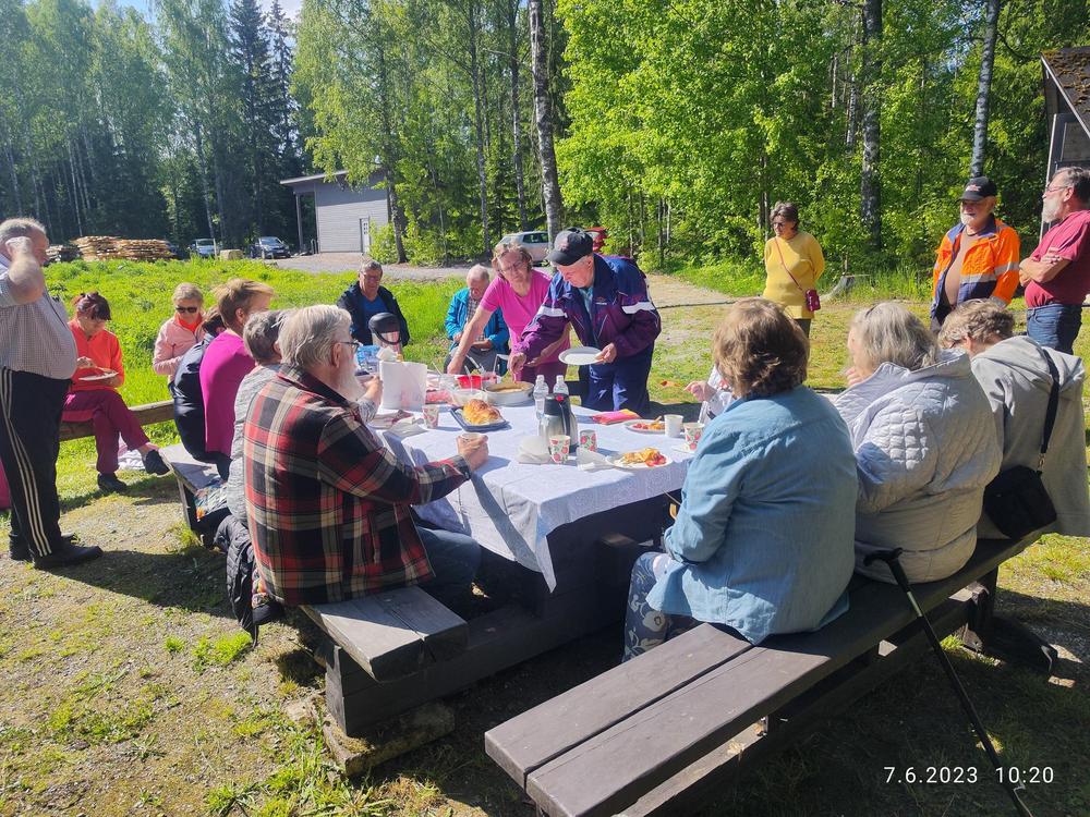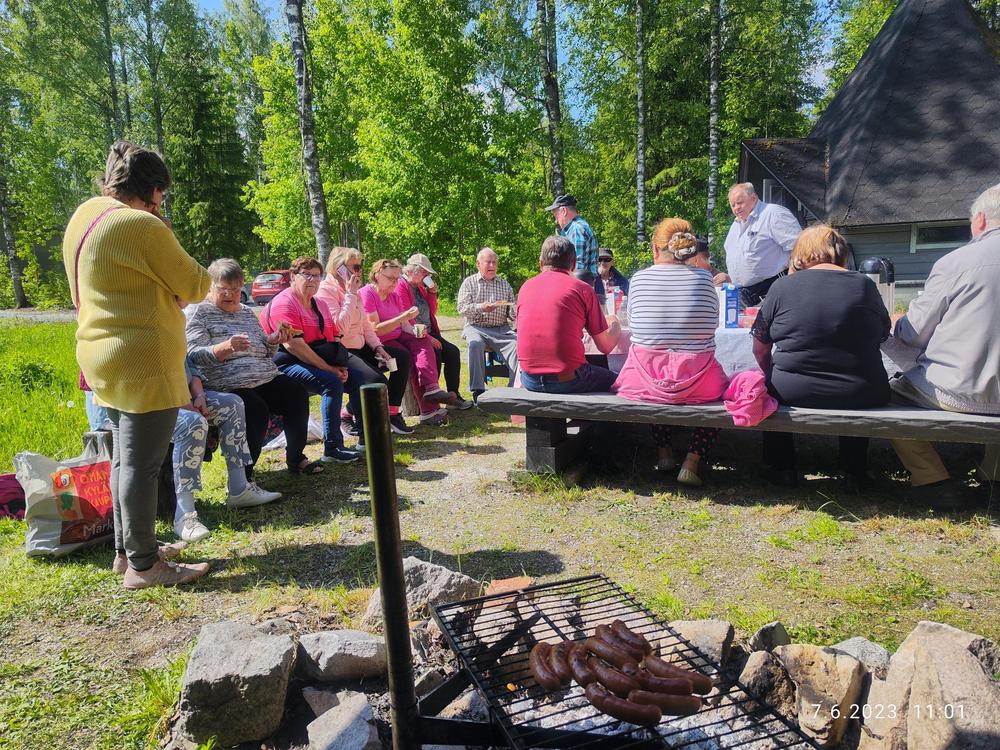 Vermijärvellä oli 24 jäsentämme , uusia ja vanhoja. Sää oli kaunis niin mikäpä parempi hetki nauttia luonnosta ja tarjoilusta. Inkku ja Erkki olivat paistaneet makoisat letut ja Pirjo tiikerikakun. Kahvin kera maistuivat hyvin ja tietenkin makkaraa oli tarjolla. Juttua oli piisannut sen verran että ei pelit ehtineet käynnistyä. Reilu kaksituntinen oli mennyt mukavasti hyvässä seurassa.