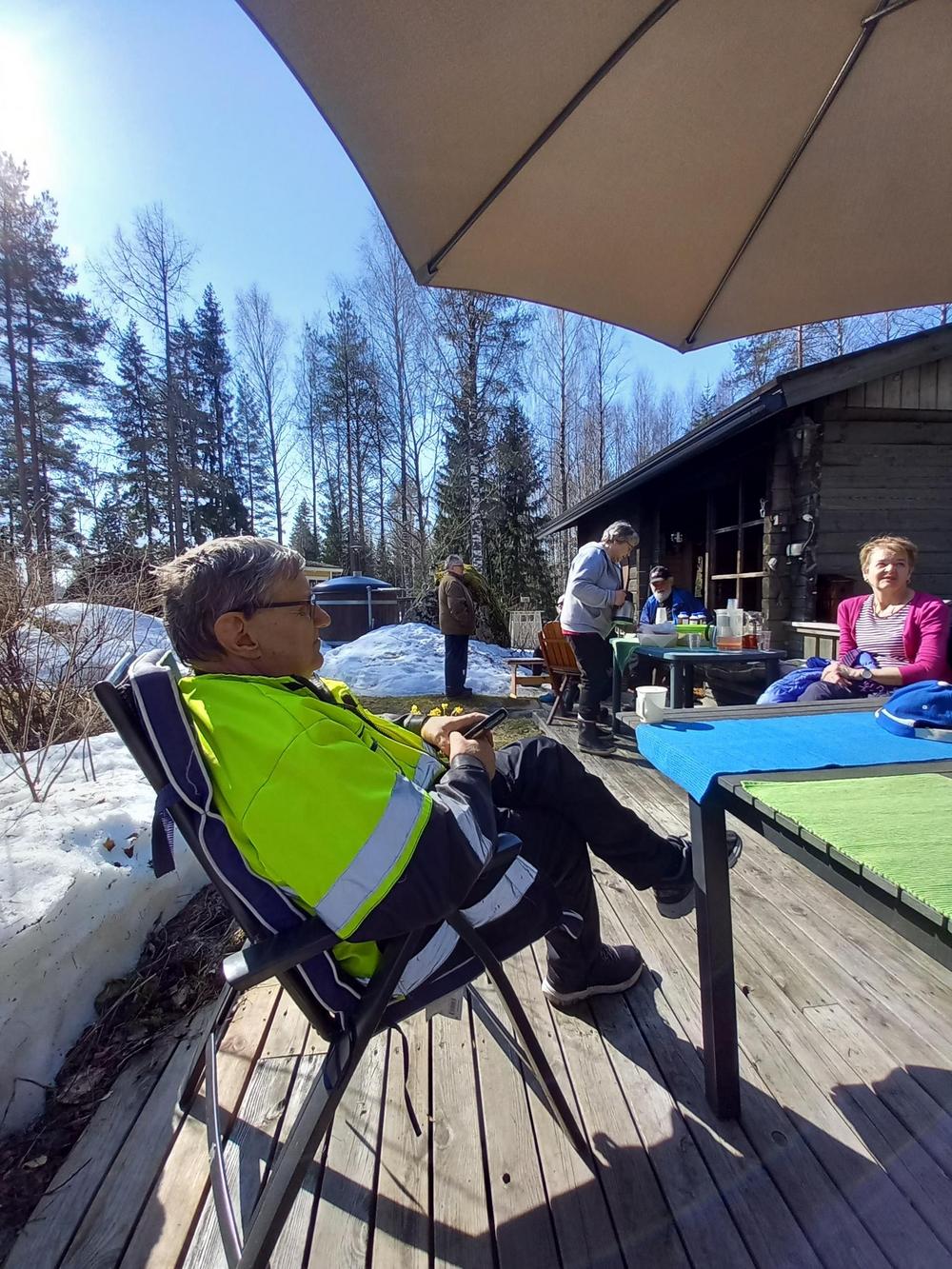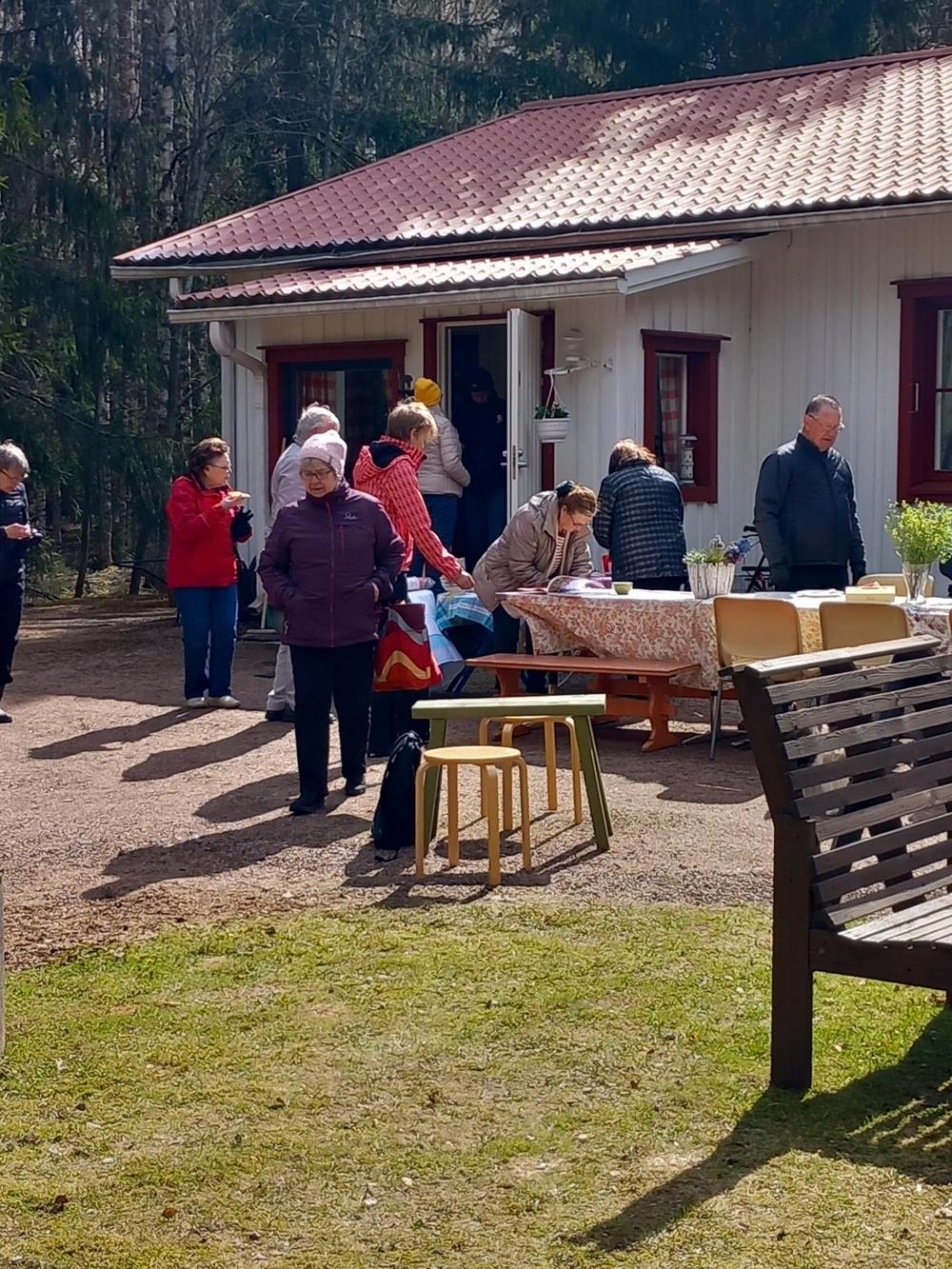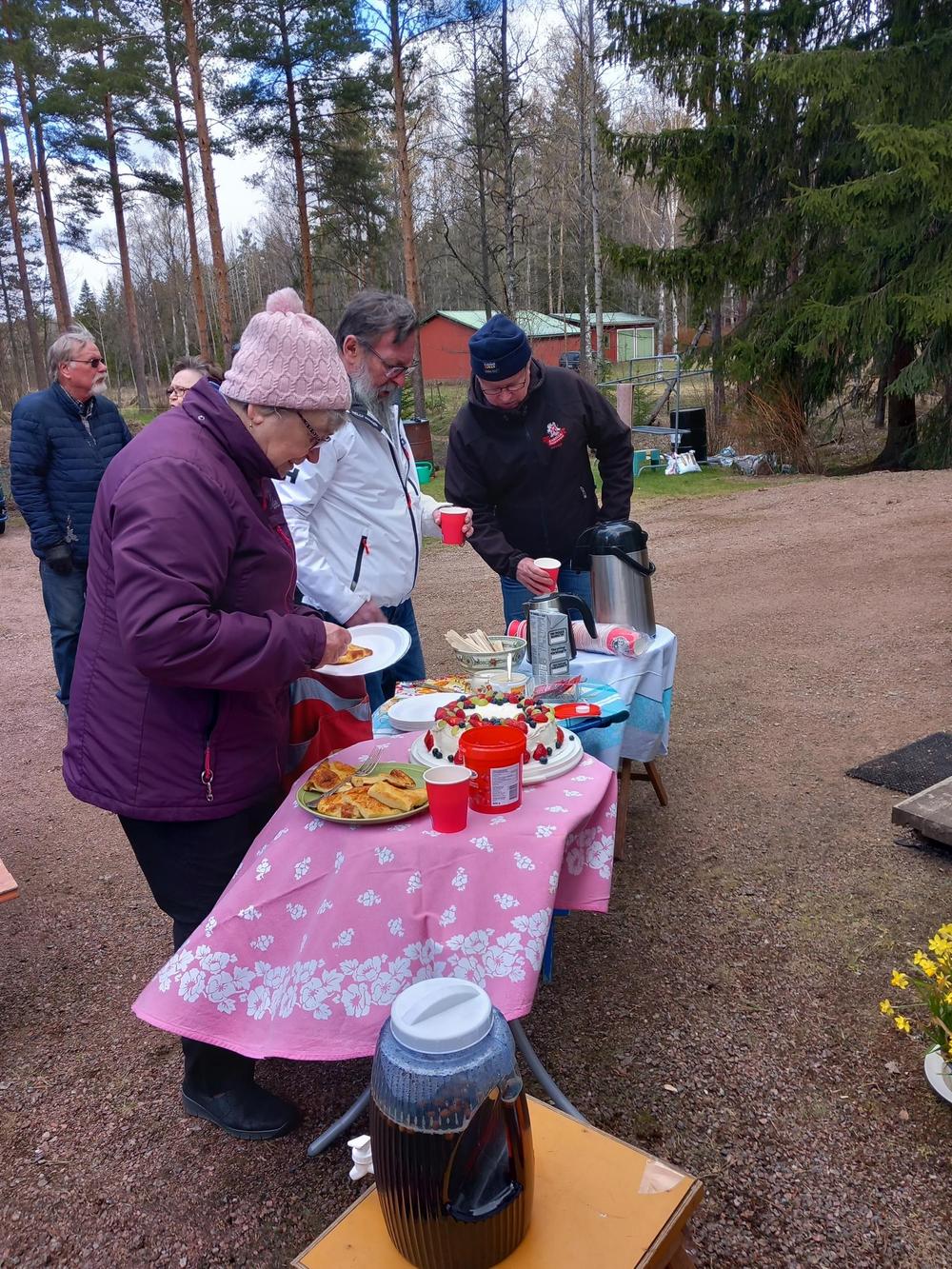 Vermijärvellä oli 24 jäsentämme , uusia ja vanhoja. Sää oli kaunis niin mikäpä parempi hetki nauttia luonnosta ja tarjoilusta. Inkku ja Erkki olivat paistaneet makoisat letut ja Pirjo tiikerikakun. Kahvin kera maistuivat hyvin ja tietenkin makkaraa oli tarjolla. Juttua oli piisannut sen verran että ei pelit ehtineet käynnistyä. Reilu kaksituntinen oli mennyt mukavasti hyvässä seurassa.