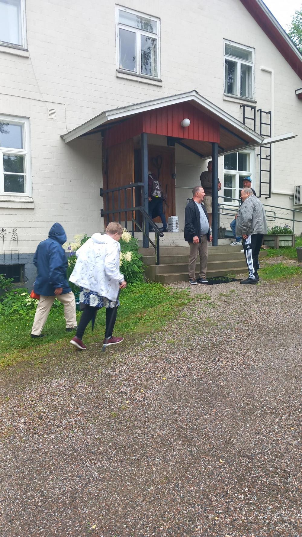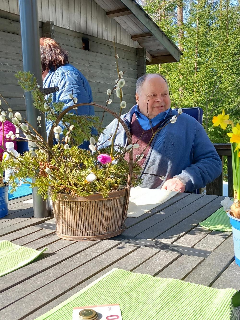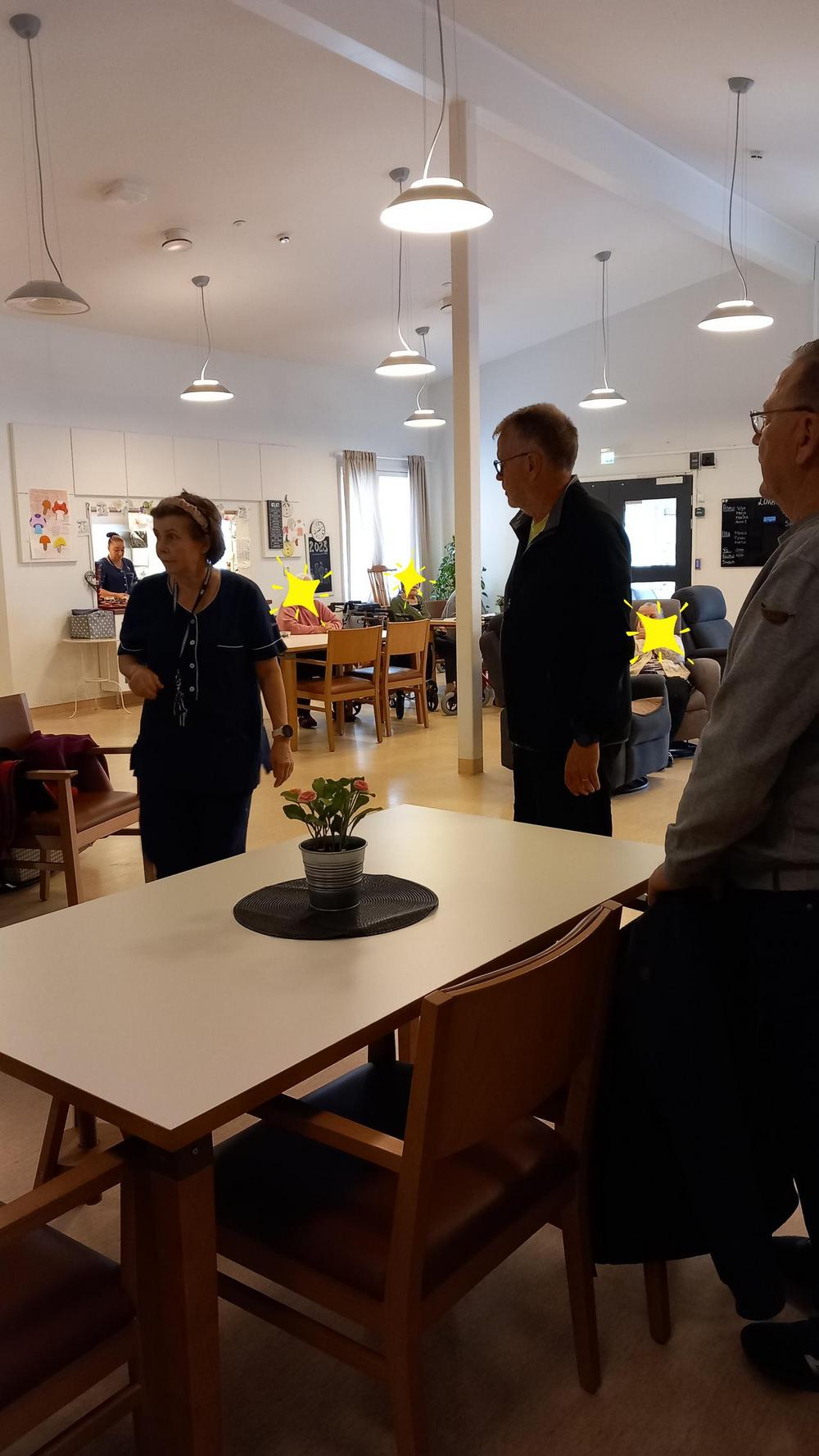 5.10 oli vuorossa Onnentäyttymys ja siellä oli asukkaita ulkoiluttamassa Tuija, Jorma, Irma, Eero ja Kikka