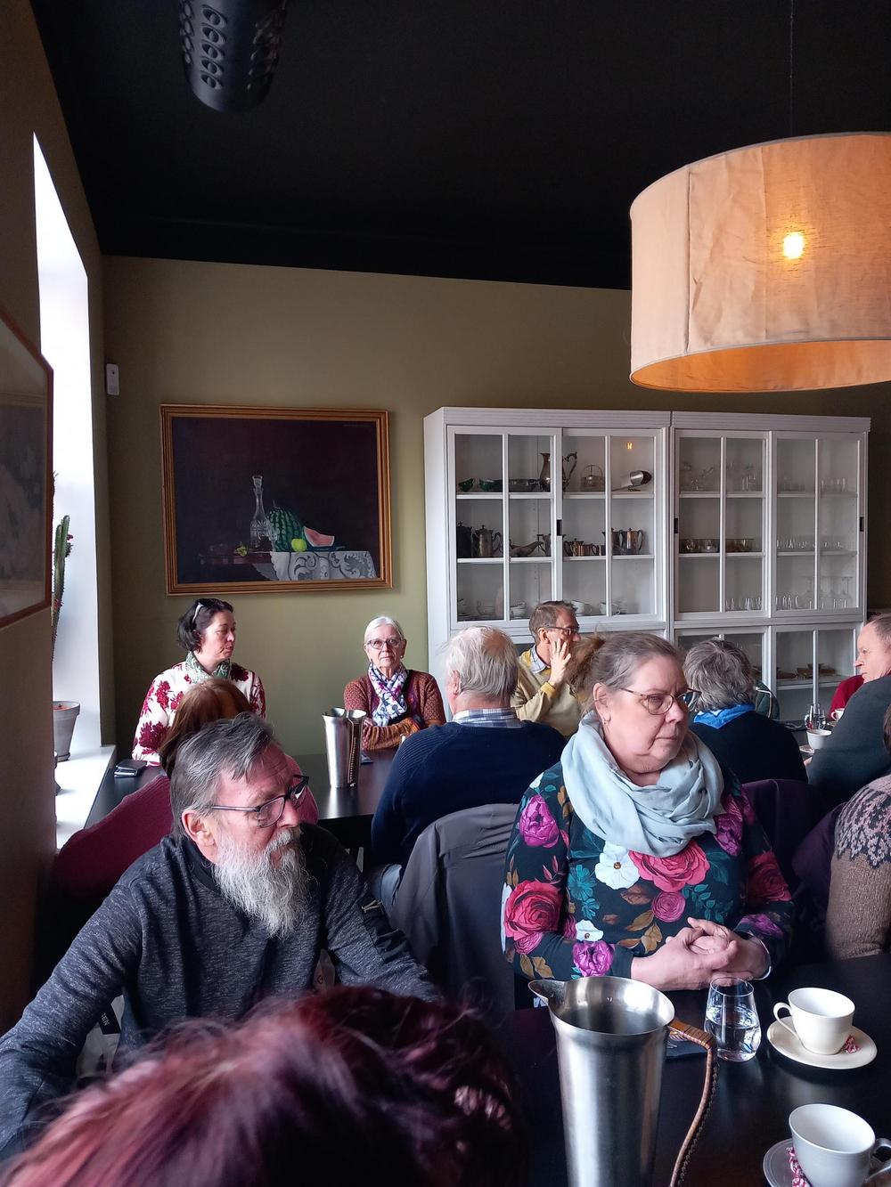 Meitä oli 23 hyvänmielen porukkaa bussiretkellä Lovisaan, matkalta nappasimme kyytiin oppaan ja lähdimme Kaijan ja Masan luokse. Onneksi vielä silloin ei satanut koska meitä odotti pihalle katettu kahvitarjoilu joka maistui kaikille. Veimme samalla Pornaisten Eläkkeensaajilta tupaantuliaislahjaksi joutsenen ja puutarhamyymälään lahjakortin. Sen jälkeen lähdimme matkaamaan kohti Strömforsin Ruukin alueelle ja sieltä kiertoajelu Loviisan keskustassa ja ympäristössä. Ja lopuksi oli ruokailu ravintola Localessa. Päätimme vielä poiketa Porvoossa Brunbergin makeistehtaalla. Olimme tyytyväistä väkeä kun matka kohti kotia alkoi. Kiitos meille kaikille osanottaneille mukavasta matkasta !