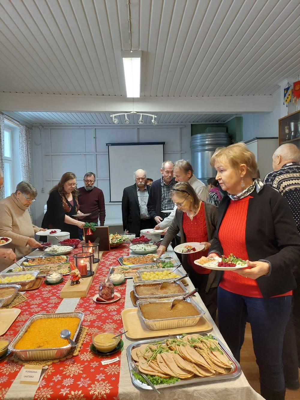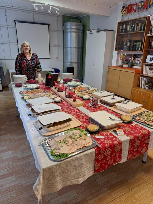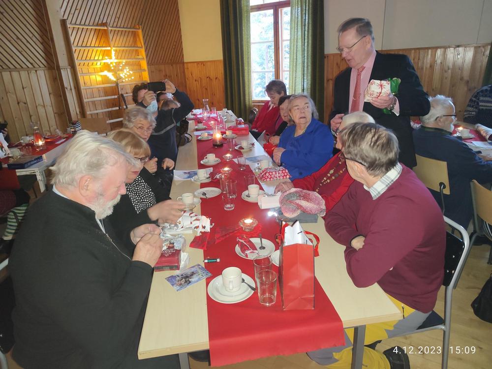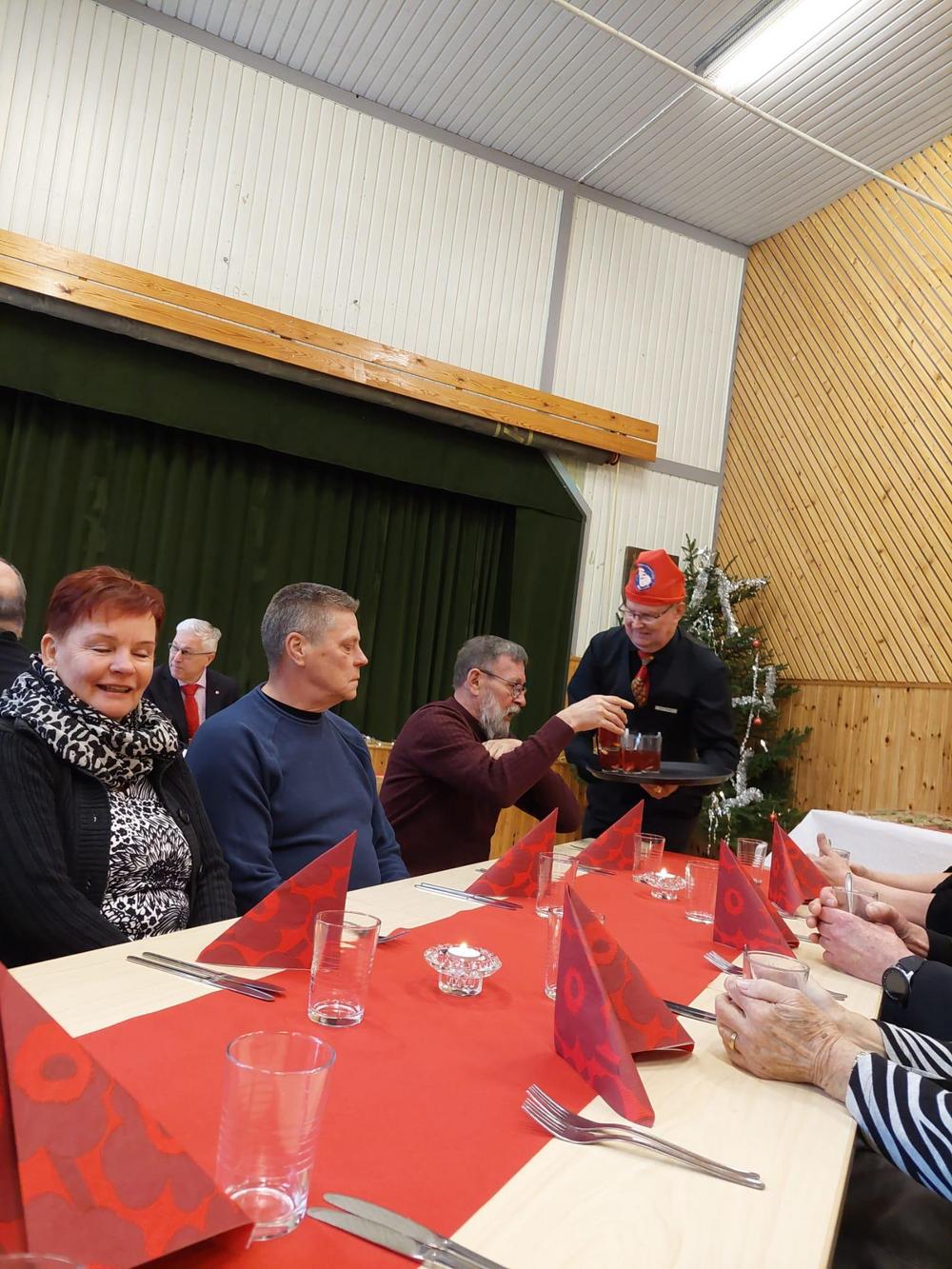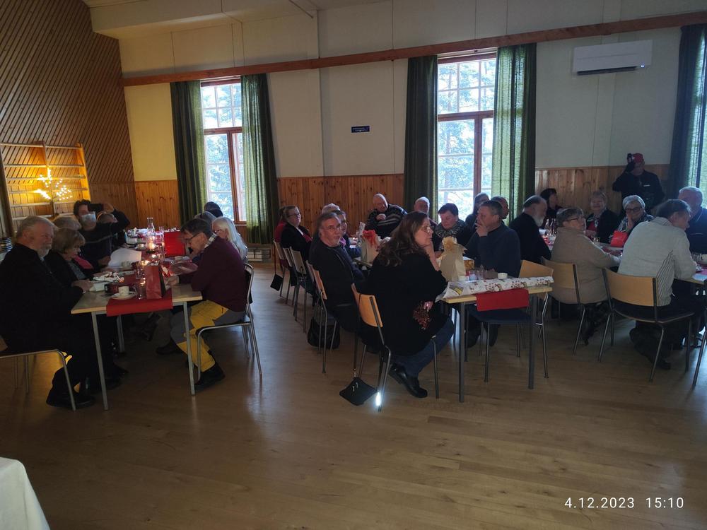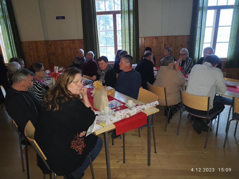Halkian työväentalolla vietimme Joulujuhlan ja meitä oli runsas joukko paikalla. Ekln Uudenmaan piirin puheenjohtaja Seppo Fahlström kertoi piirin kuulumiset ja Kaija lausui runoja. Kukitettiin vuosipäiviä viettäneet ja sen jälkeen oli vuorossa ruokailu.