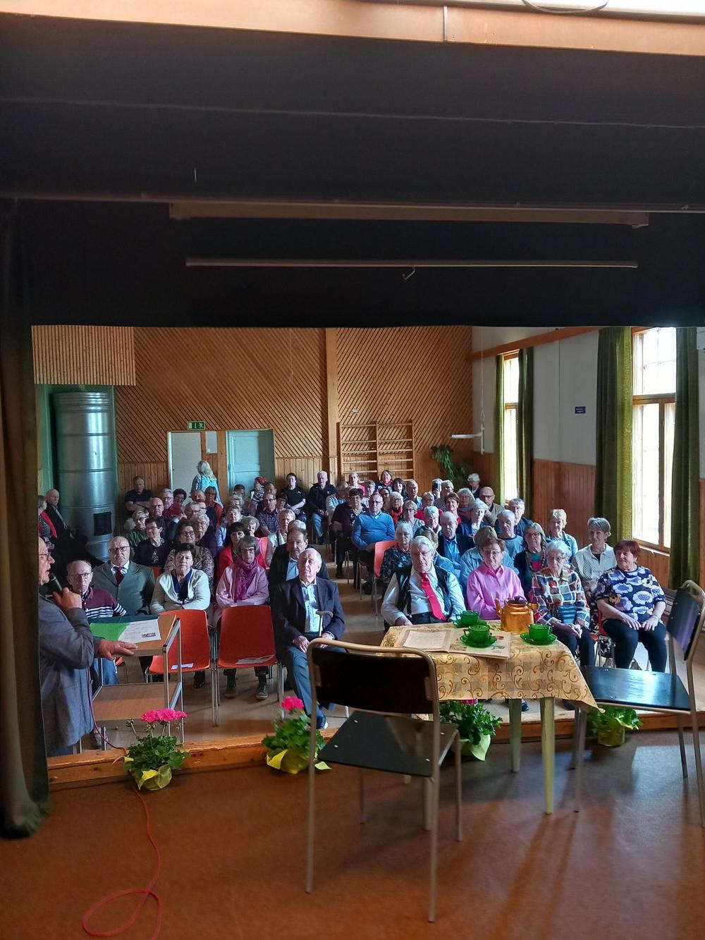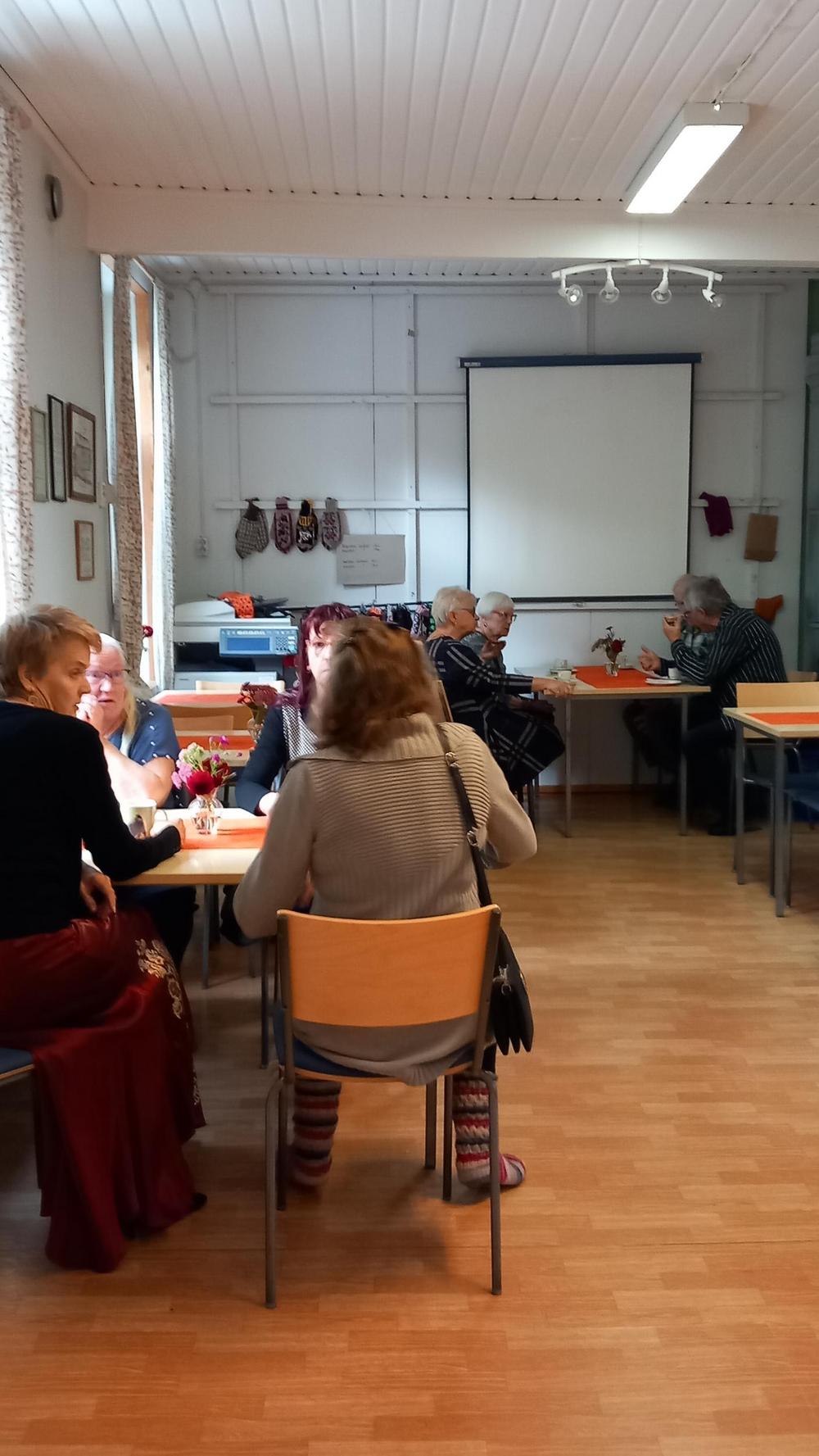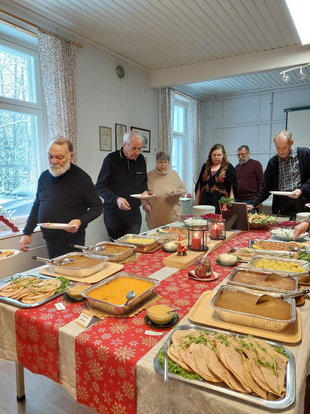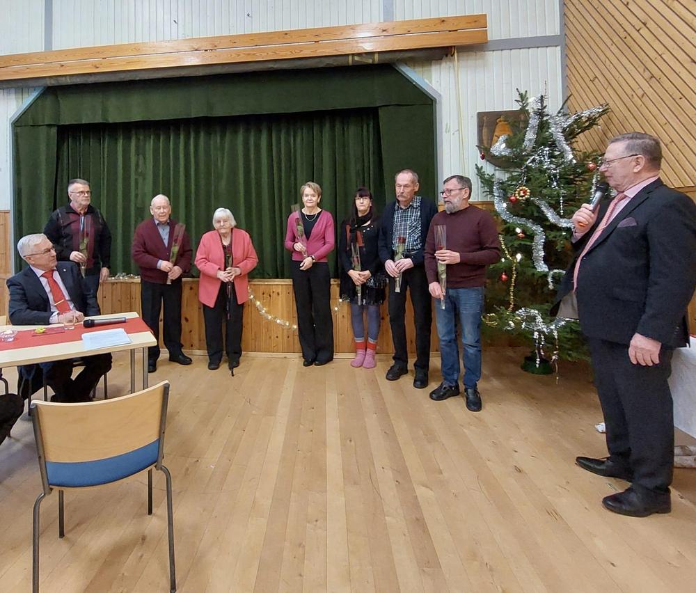 Halkian työväentalolla vietimme Joulujuhlan ja meitä oli runsas joukko paikalla. Ekln Uudenmaan piirin puheenjohtaja Seppo Fahlström kertoi piirin kuulumiset ja Kaija lausui runoja. Kukitettiin vuosipäiviä viettäneet ja sen jälkeen oli vuorossa ruokailu.