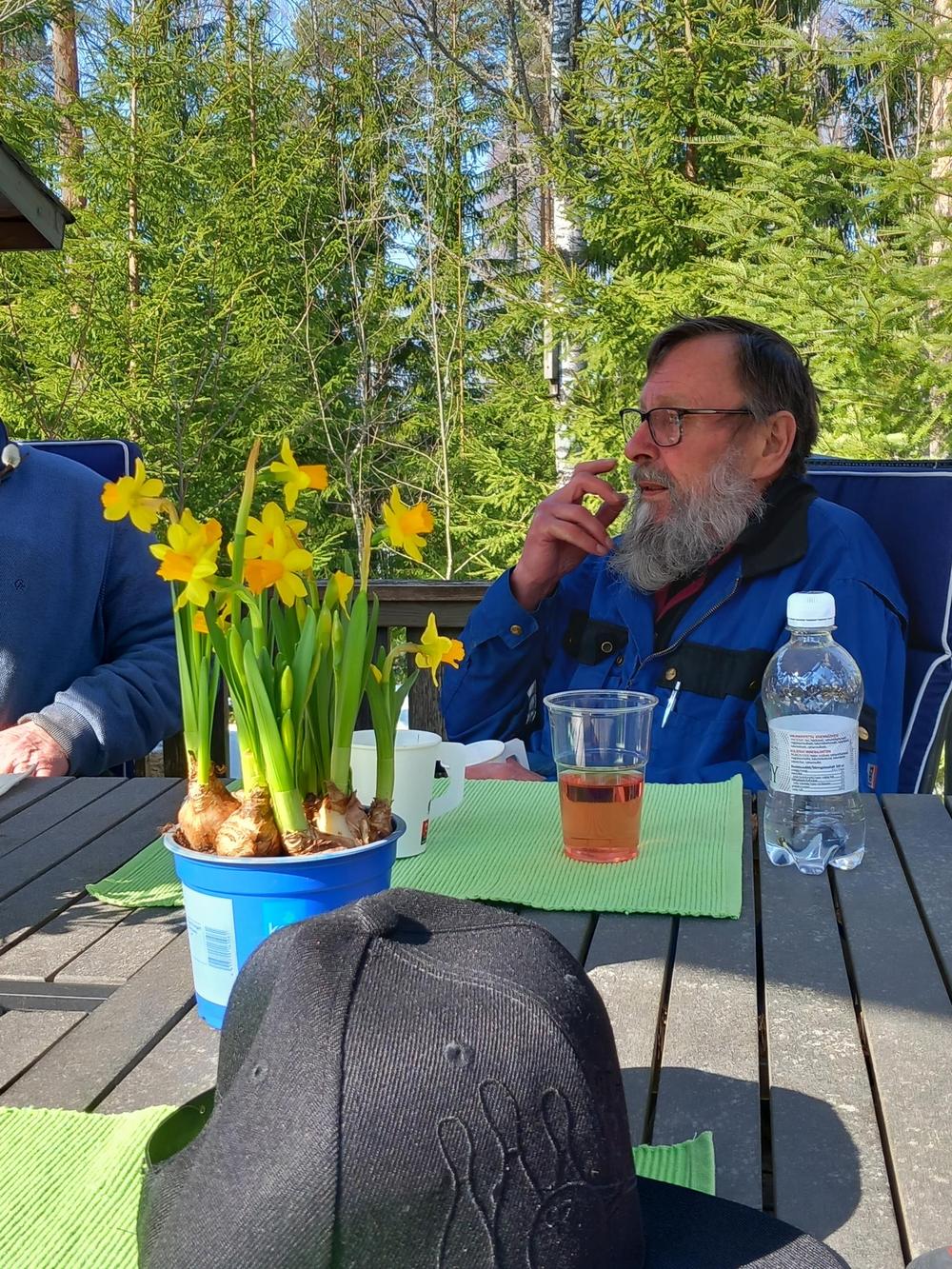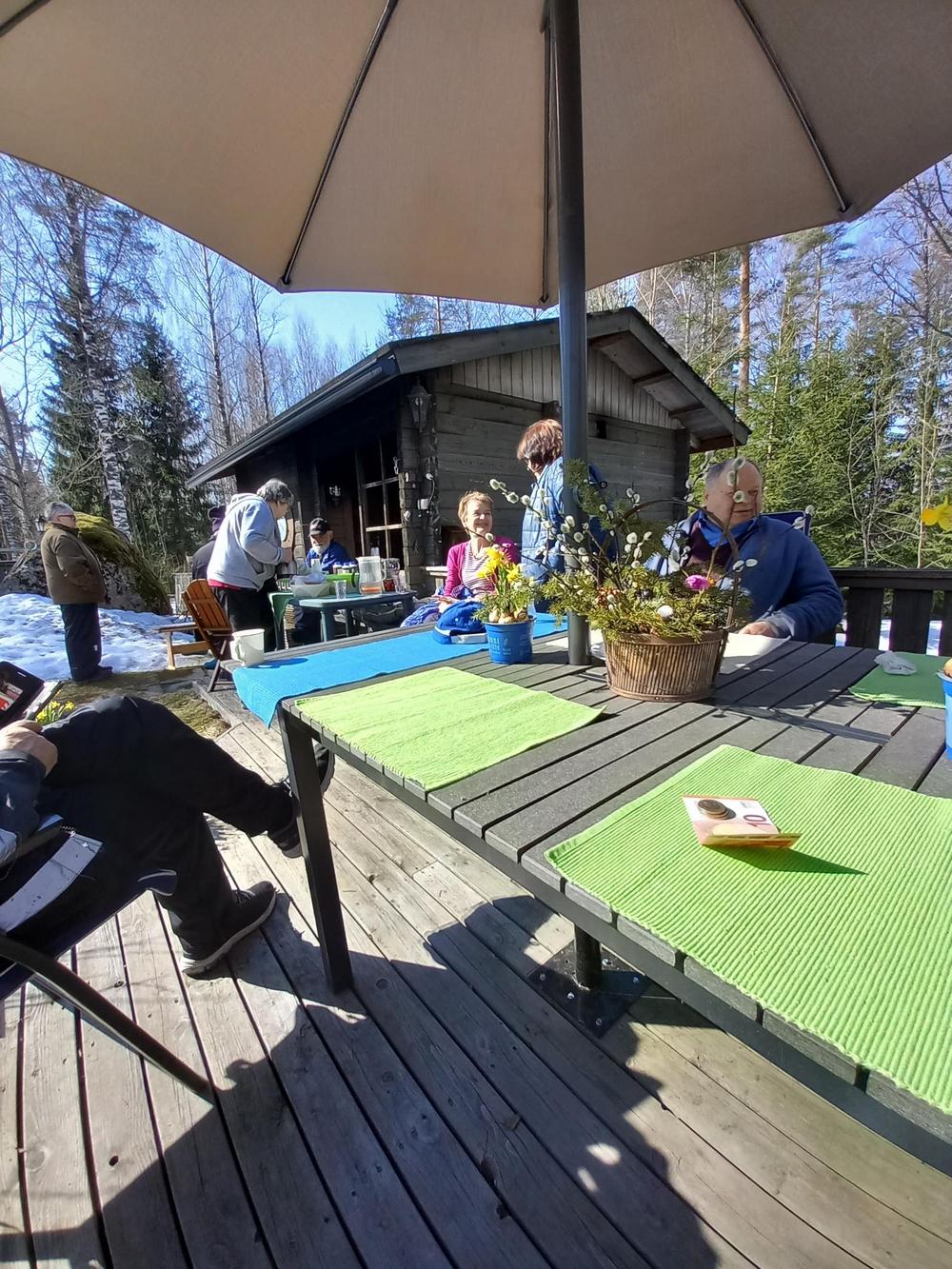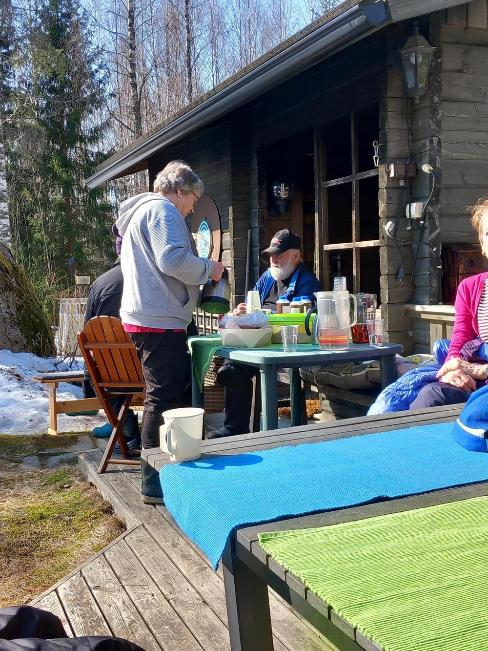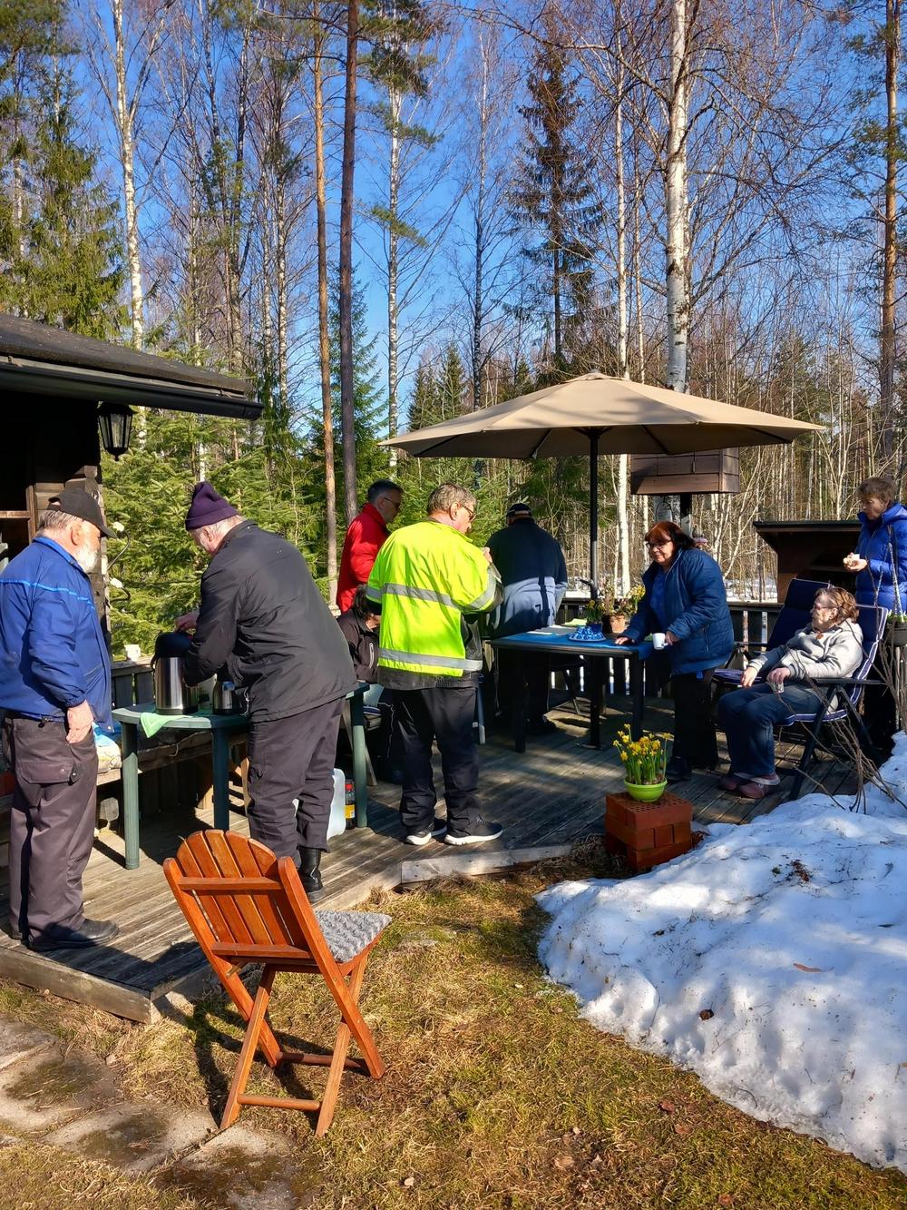 Kaunis keskiviikkopäivä Mattiloilla linnunpönttötalkoissa, mukavaa yhdessäoloa nauttien isäntäväen mahtavasta tarjoilusta. Oli ilo olla mukana hauskassa seurassa. Kyllä niitä pönttöjäkin saivat miehet aikaan mutta kuvia ei valitettavasti niistä ole mutta eiköhän se ollut sivuseikka. Muutama pöntöntekijä puuttuu kuvasta kun viimeistelivät vielä pönttöjään. Kiitos Inkku ja Erkki ja kiitos muille osallistujille. Irma, Anneli, Hanna, Jari, Pentti, Arvi, Marja, Jorma M, Tuija, Jorma L, Pirjo, Raimo, Eero ja kameran takana Kikka.