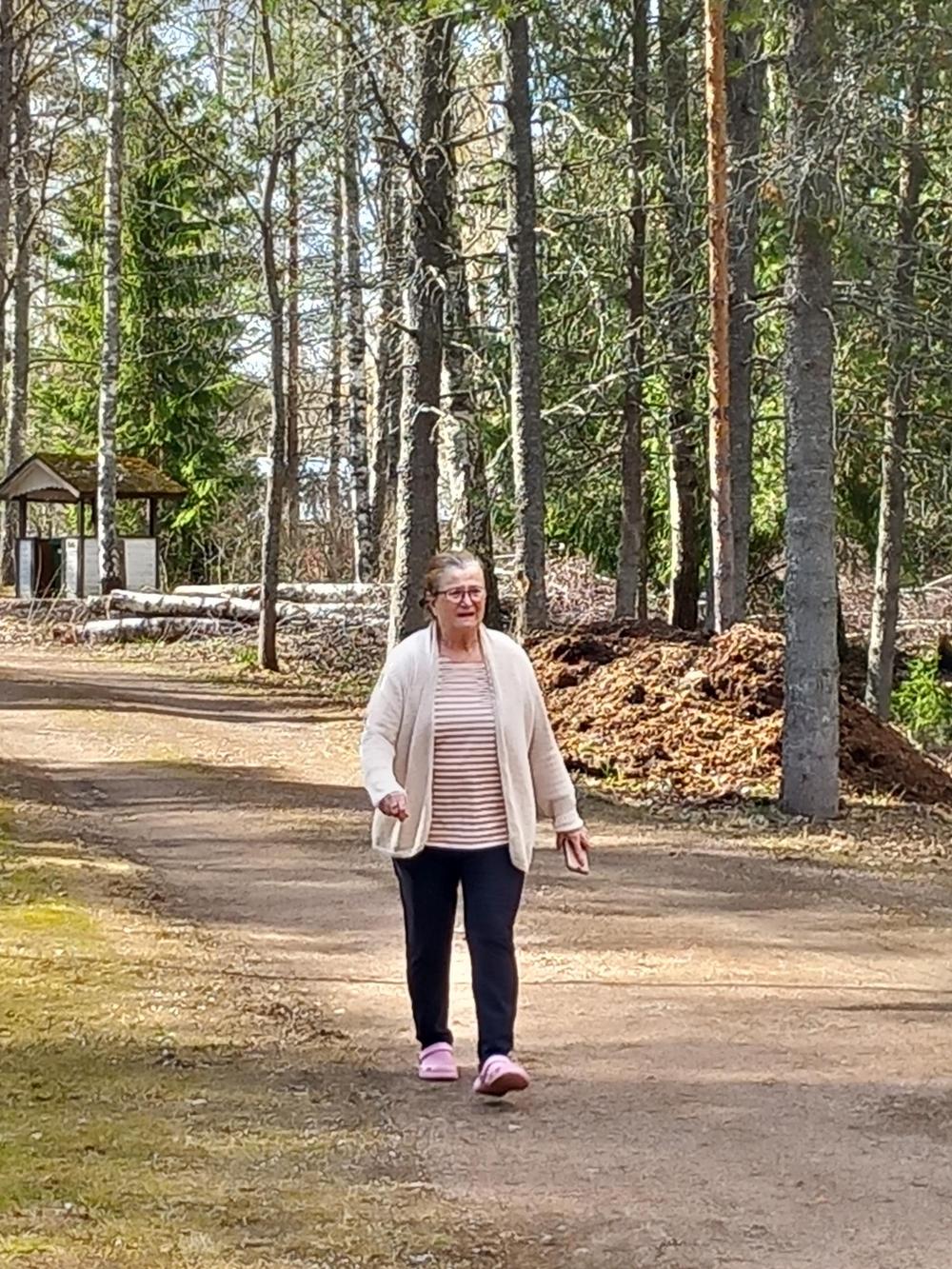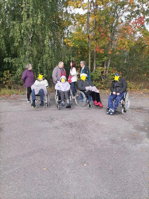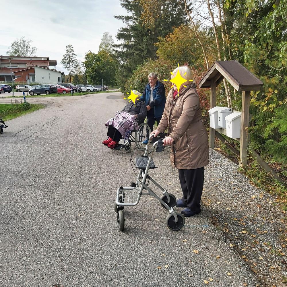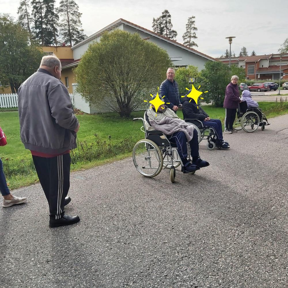 3.10 oli ulkoiluttamassa Aurinkomäen asukkaita Irma, Inkku, Elisa, Erkki,Raimo ja Eero